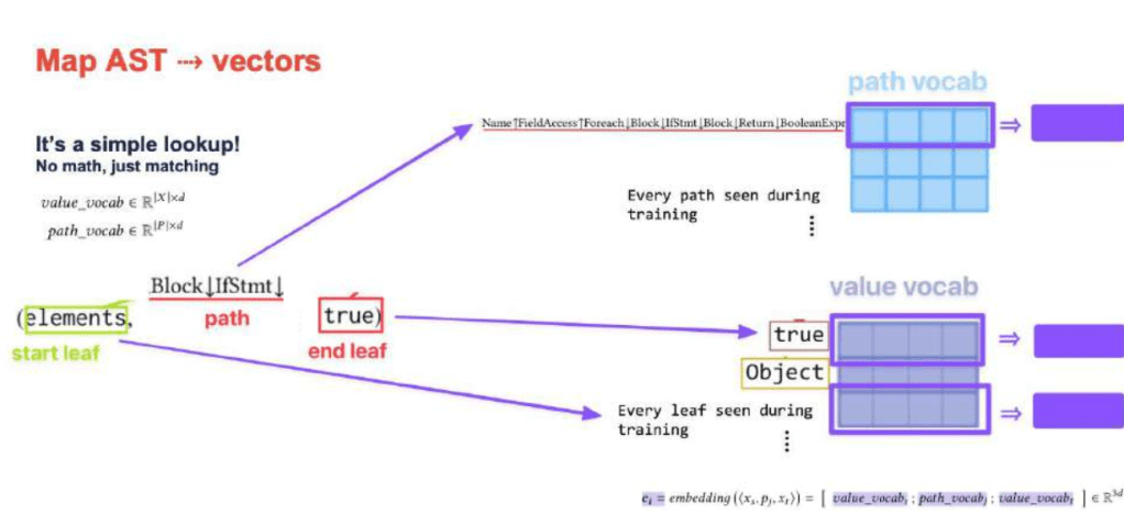 Detailed analysis of Code-2-vec, the original vector embeddings of code Circa 2018. Presented in Feb 2022.