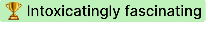 Intoxicatingly fascinating. Best of the best. For only those works that I could never put down, and have never stopped thinking about.