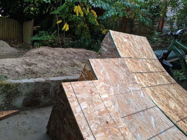 Jumping a bike is a whole skill in and of itself. Start small and stay within your abilities or you will get hurt! To learn in a controlled environment, I’ve built my own jumps where I can slowly progress in size.