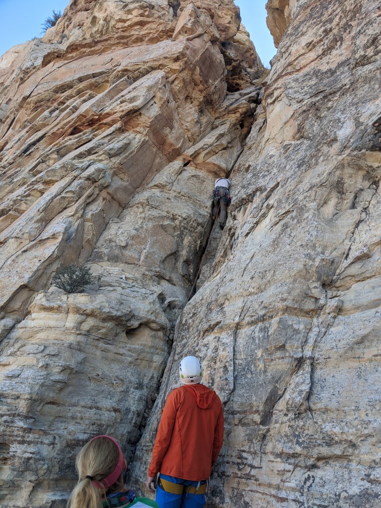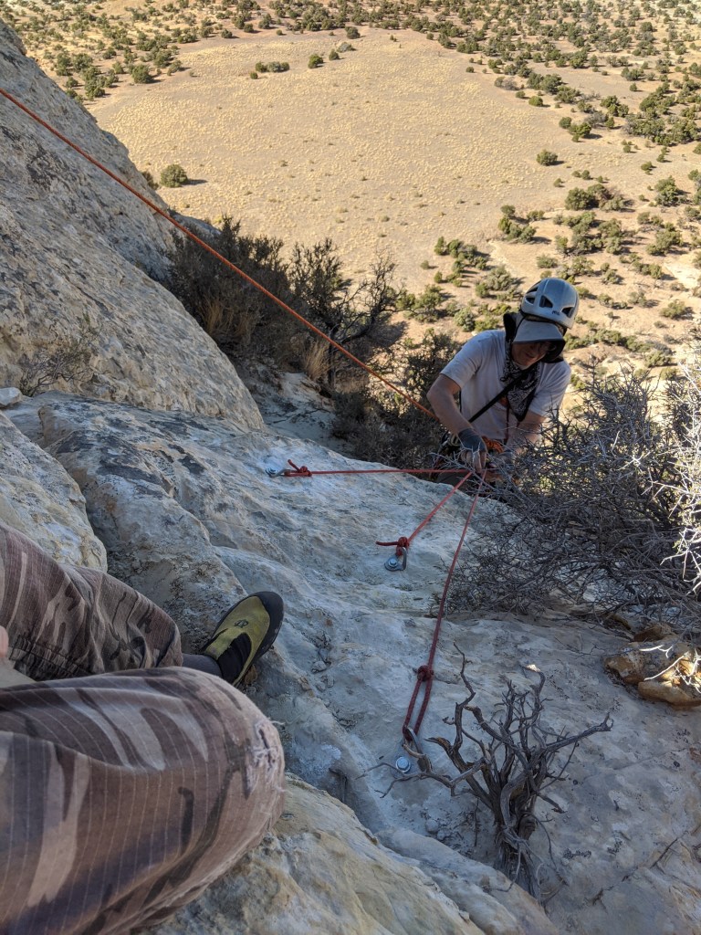 Natural Weaknesses: 4 Pitches, a STIFF 5.6, and was very steep at times and during the crack pitch. No existing protection, but there are 3 (or was it just two?) rappel anchors right along this route for the descent. My dad and I named this route Natural Weaknesses because I don’t think it’s an existing route, and we just wanted to mess around and find a fun way up.