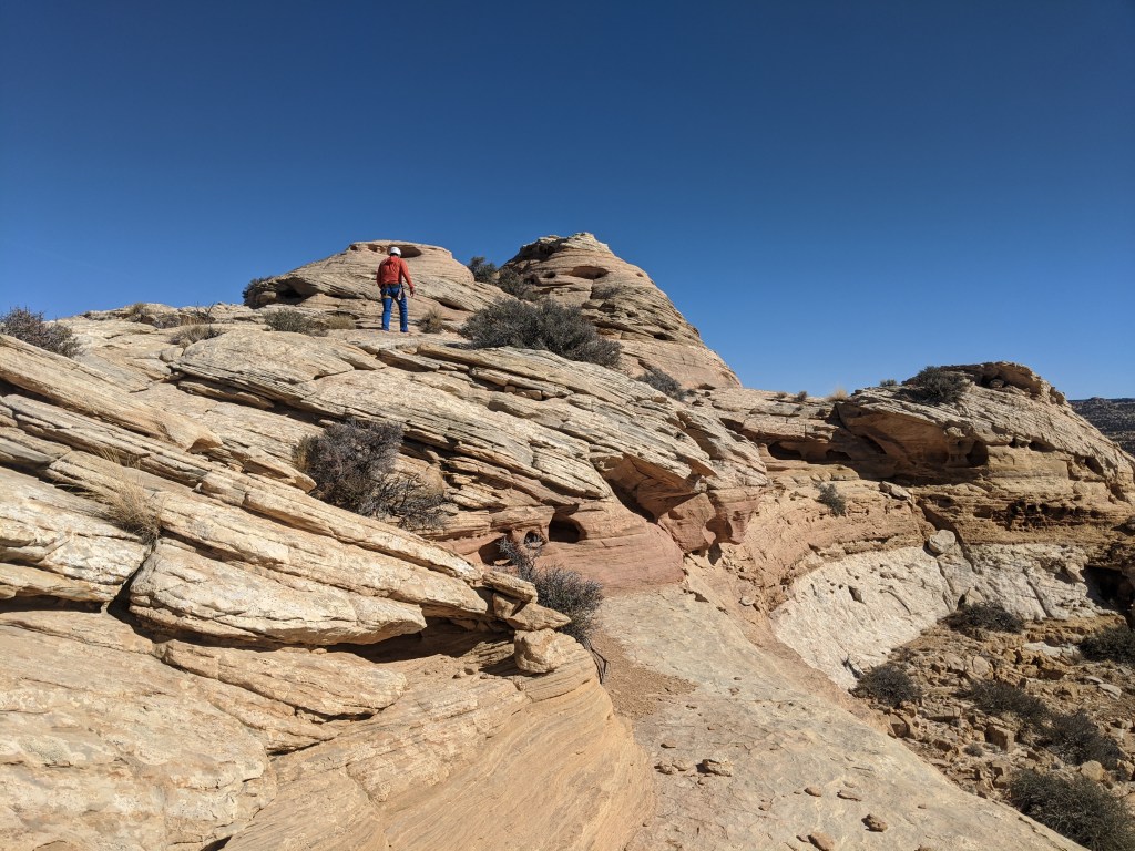 The area is filled with Monument Valley-style towers rising out of the desert. Most of the tower is essentially unclimbable with no route up, but of course, there was a natural weakness to be found. Our ascent was primarily a 5.6 or 5.7 hand crack.