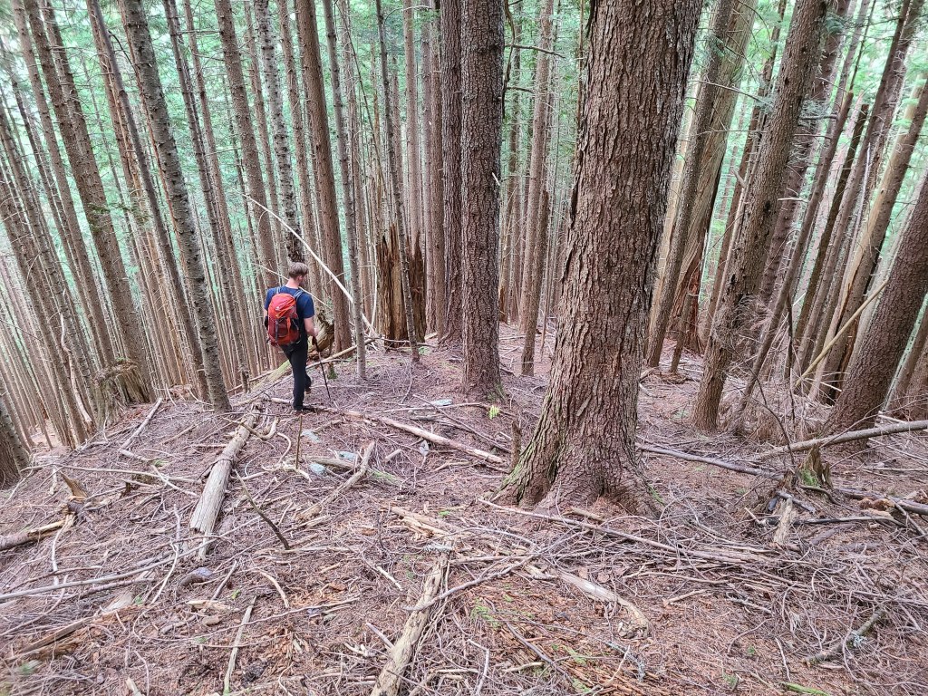 Also, it’s a dream of mind to build a mountain bike track straight down this mountain. Just clear up some of the bigger sticks, and you’d have an insanely steep and rowdy descent. Jumping off rock drops, slaying the brown pow loam.. that’s the dream.