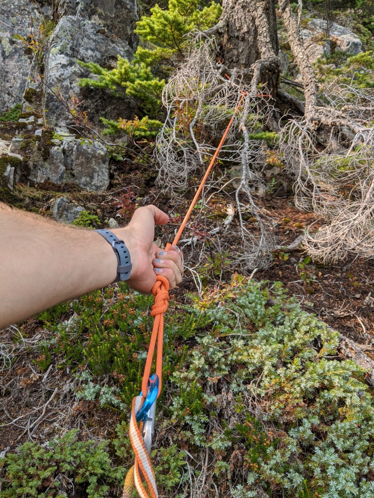 We set up 2 rappel stations for the descent. Lucky you if you can find them from these photos!